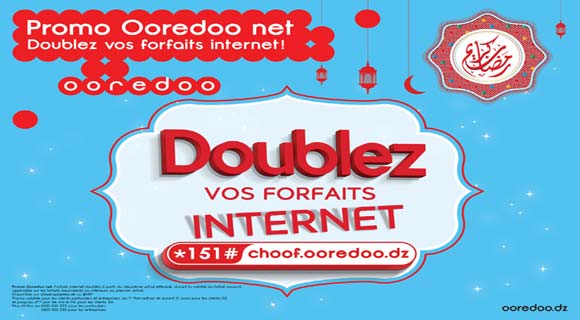 En ce mois de Ramadan, Ooredoo fait profiter ses clients de l’Internet et leur dédie une promotion leur permettant de doubler le volume de leurs forfaits Internet.